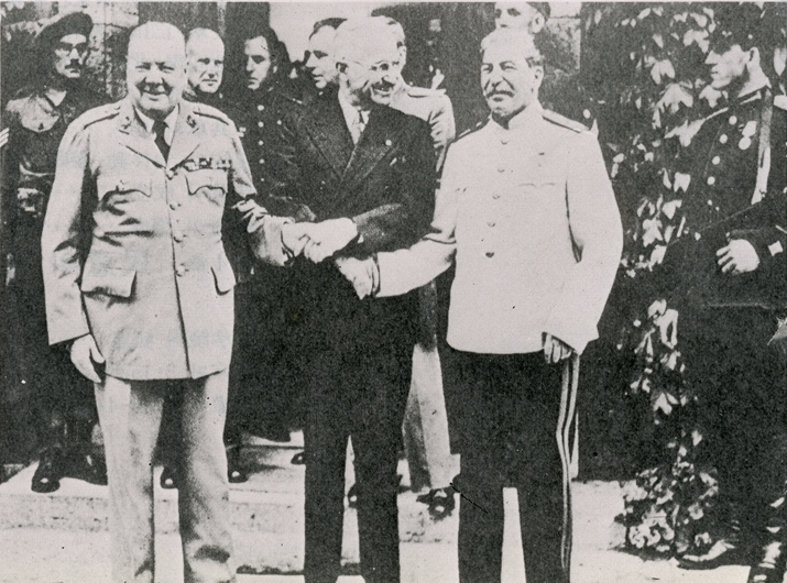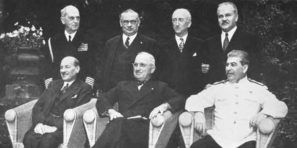 ★ 포츠담 회담(Potsdam Conference) : 1945년 7월 17 ~8월 2일까지 독일 포츠담에서 개최된 회담으로 스탈린(소련), 애틀리 총리(영국), 트루먼 대통령(미국)이 각국 대표로 참가하였다. 5월 8일(유럽전승기념일) 무조건 항복하기로 한 독일을 어떻게 통치할 것인지와 전후 질서, 평화 조약 이슈, 전쟁의 영향에 대한 대응 등을 논의하였다. 회담의 결과로 포츠담 협정을 의결하였고, 회담 중 일본의 항복을 요구하는 <포츠담 선언>을 발표하였다.