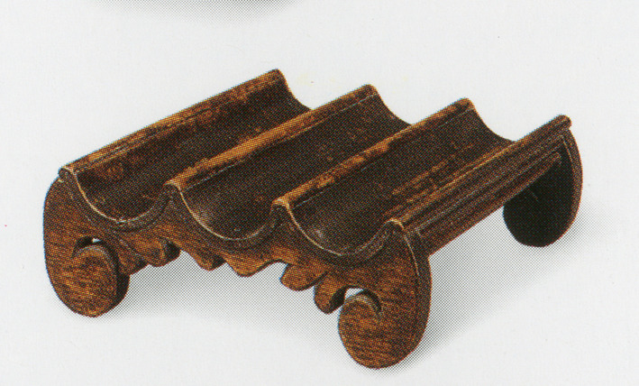 ★ 필격(붓받침) : 사용하던 붓을 잠시 뉘어 놓는 받침. 반으로 쪼갠 통대 세 개를 연결하고 아래에 박쥐 모양을 조각한 목판을 대었다. 높이 5.7cm.