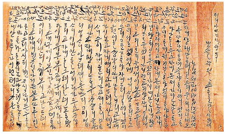 ★ 이응태 부인의 한글 편지 : 1586년에 사망한 이응태(李應台, 1556~1586)의 부인이 작성한 한글 편지로, 1998년 안동대학교 박물관이 안동시 정하동에 위치한 이응태의 묘에서 발견하였다. 편지에는 젊은 나이에 세상을 떠난 남편에 대한 부인의 안타까운 심정이 잘 드러나 있으며, 16~17세기의 부부 관계 및 생활사, 언어학적 연구에 중요한 자료로 활용되고 있다.