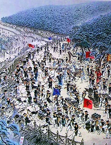 세계사210 [조선/사상과학문] 천주실의(天主實義) 천주실의(天主實義) ★ 천주실의(天主實義) : 로마 가톨릭교회의 교리를 변증(논리적으로 분석)한 서적.예수회 선교사 마테오 리치가 저술하였다. 명나라 말기에 사대부들에게 전파되었고, 이후 조선과 일본에도 전해졌다. 2019. 11. 20. [조선후기/학문과사상/실학] 아담 샬 아담 샬 ★ 요한 아담 샬 폰 벨(Johann Adam Schall von Bell, 1591~1666) : 독일 출신의 예수회 선교사이자, 로마 가톨릭교회 사제로 흔히 아담 샬이라 부른다. 1622년 중국으로 건너와 명나라에서 벼슬을 받았으며, 천문학와 역학에 뛰어나 역서(曆書)인 시헌력(時憲曆)의 편찬, 대포 제조 등을 지도하였다. 청나라 초기에 선교, 학문 등에서 활동하고 베이징 천문대장에서 높은 지위에 올랐으나 청나라 학자들의 모함으로 벼슬에서 물러났다. 병자호란 때 볼모로 잡혀 왔던 조선의 소현세자와 교류하며 천문 지식과 기독교 교리를 전해 주기도 했다. 2019. 11. 16. [조선후기/사상과학문/실학] 마테오 리치 마테오 리치 ★ 마테오 리치(Matteo Ricc, 1552~1610) : 로마 가톨릭교회의 사제이자, 중국을 비롯한 아시아 대륙에 기독교 신앙을 정착시킨 이탈리아 출신 예수회 선교사이다. 16세기 후반 해외 선교에 나서 인도를 거쳐 마카오를 통해 중국(명)에 정착하였다. 세계지도 곤여만국전도>를 제작하고 로마 가톨릭 교의를 변증한 천주실의>를 저술하였다. 그의 활동은 동아시아 중화 사상 탈피에 큰 영향을 주었다. 2019. 11. 16. [조선/지리학] 동국지도(필사본) 동국지도 (필사본) 정상기 <동국지도>의 채색 필사본(18세기) ※ 저작권 문제가 있을 때는 삭제하겠습니다. 2019. 11. 9. [조선/사상과학문/실학] 곤여만국전도 곤여만국전도 ★ 곤여만국전도(坤輿萬國全圖) : 1602년에 예수회 이탈리아인 신부 마테오 리치와 명나라 학자 이지조(李之澡)가 함께 만들어 목판으로 찍어 펴낸 지도. 아시아, 유럽, 아프리카, 남북아메리카, 오세아니아, 남극이 표현되어 있다. 곤여만국전도>의 전래는 중국 중심의 세계관을 해체하는 데 큰 영향을 끼쳤다. 2019. 11. 8. [조선후기/지리학] 천하도지도 천하도지도 ★ 천하도지도(天下都地圖) : 조선 실학자들이 서양 지도를 토대로 만든 세계지도로, 18세기 후반 제작된 에 포함되어 있다. 경선과 위선이 표시되어 있고 태평양을 중앙에 배치하였다. 2019. 11. 8. [조선/실학]천하도(天下圖) 천하도(天下圖) ★ 천하도(天下圖) : 조선 중기 이후 유행하게 된 지도로서 중화사상과 상상적 세계관을 바탕으로 만들어진 원형의 세계지도이다. ※ 저작권 문제가 있을 때는 삭제하겠습니다. 2019. 11. 8. [조선/대외관계]조선 통신사의 길 조선 통신사의 길 ★ 조선 통신사(朝鮮通信使): 일반적으로 개화기 이전까지 조선이 일본에 파견한 대규모 사절단으로 통신사라고도 부른다. ※ 저작권 문제가 있을 때는 삭제하겠습니다. 2019. 11. 5. [조선/대외관계]조선시대 연행로 조선시대 연행로 ★ 연행사(燕行使) : 조선이 청나라에 보낸 사신(使臣) 및 사절단. 청의 도읍인 연경(燕京, 베이징)에 가는 사신을 의미하며, 1637년(인조 15년)부터 1893년(고종 30년)까지 256년에 걸쳐 총 507회 파견되었다. ※ 저작권 문제가 있을 때는 삭제하겠습니다. 2019. 11. 5. [조선후기/대외관계] 백두산정계비 백두산 정계비 백두산 정계비 백두산 정계비의 자리에 세워진 백비(白碑) ★ 백두산정계비(白頭山定界碑) : 1712년(숙종 38, 강희 51)에 청 제국과 조선국의 백두산 일대 국경을 정하기 위하여 세워진 경계표지물로 백두산 천지(天池)에서 남동쪽으로 약 4 km 떨어진 곳에 세웠다. 비문에는 “(중략) … 이곳에 이르러 살펴보니 서쪽은 압록강이고 동쪽은 토문강이므로, 분수령 상에 돌에 새겨 명기한다.”고 새겼다. 19세기 후반에는 비문의 해석을 둘러싸고 간도 귀속 문제가 불거졌으며, 1909년 일본과 청국의 간도협약으로 간도 일대는 중국이 지배하게 되었다. 이 비는 1931년 사라졌는데, 일본군이 철거한 것으로 추정된다. 2019. 11. 4. [조선/병자호란]병자호란창의록(丙子胡亂倡義錄) 병자호란창의록 (丙子胡亂倡義錄) ★ 병자호란창의록(丙子胡亂倡義錄) : 병자호란 때(1636) 호남의 의사들이 의거한 사적을 기록한 역사서. ※ 저작권 문제가 있을 때는 삭제하겠습니다. 2019. 10. 29. [조선/호란]강홍립의 항복 강홍립의 항복 ※ 저작권 문제가 있을 때는 삭제하겠습니다. 2019. 10. 27. [조선중기/임진왜란] 제1차 진주성 전투(진주대첩) 제1차 진주성 전투 ★ 제1차 진주성 전투(第1次 晋州城 戰鬪, 1592년 11월 7일~11월 13일) : 임진왜란 3대 대첩 중 하나로 제1차 진주성 공방전, 진주대첩이라고도 한다. 진주목사 김시민이 이끄는 관군과 의병이 협력하여 왜군을 물리쳤다. 일본군이 호남으로 진출하려던 계획을 좌절케 한 전략상 중요한 승리였다. 2019. 10. 26. [조선중기/임진왜란] 한산도 대첩 한산도 대첩 ★ 한산도 대첩(閑山島大捷, 1592년 8월 14일) : 임진왜란의 3대 대첩 중 하나로, 한산도 앞바다에서 조선 수군이 왜군을 크게 무찌른 해전이다. 이 전투에서 일본 수군의 주력을 거의 격파해 왜군의 수륙병진계획을 좌절시켰으며, 조선 수군이 남해안 일대의 제해권을